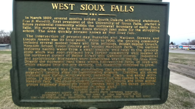 As the photo above shows, shortly after the State of South Dakota became a State in 1889, this area was platted and reserved to become a quiet, residential community. First discovered by Edith Meredith, this area of Sioux Falls quickly developed into what would become West Sioux or "West Sioux Falls" - as I have mentioned in the past, the intersection of W. Madison, Burnside Street, and Lincoln Avenue quickly became its center point of the former town site, which at the time situated on the outside of the main part of Sioux Falls itself which had not yet expanded past the Downtown area.