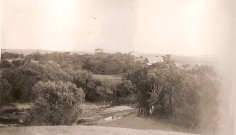 Home in the backdrop, where the roof peaks out on top of the trees. The land here was owned and cared for by John Bauman according to the 1929 zoning map.